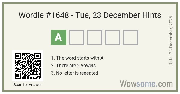The clues, hints and answer of wordle number 1648 of Tuesday, 23rd December 2025 are discussed in this article.
