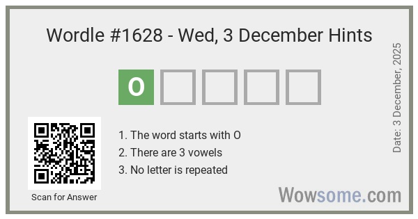 Wordle is an addictive vocabulary game played by millions around the globe. Some of the Wordles are not easy to solve. If you need some help, then you not alone. This article will help you solve the Wordle #1628 of Wednesday, 3rd December 2025.