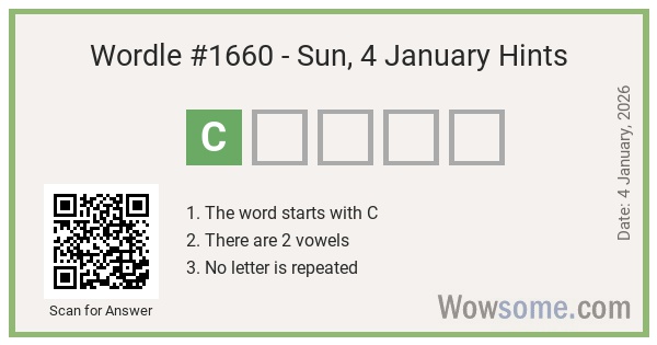 Wordle is a famous game about guessing word which has taken internet by storme. Not every Wordle can be solved easily. If you can not solve it, then do not worry we got you. This article will help you solve the Wordle #1660 of Sunday, 4th January 2026.