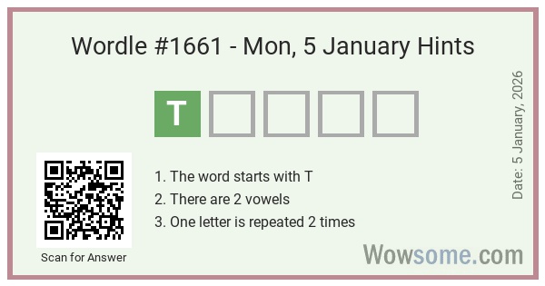 Wordle is an extremly popular vocab game which most of us have played at least once. Few Wordles are hard to crack. If you are facing difficulty, then do not worry we got you. Let us try to solve the Wordle #1661 of Monday, 5th January 2026.