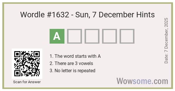Wordle is an extremly popular vocab game which has won hearts of everyone. Few Wordles are hard to crack. If you need some help, then we have some hints for you. Let us try to solve the Wordle #1632 of Sunday, 7th December 2025.