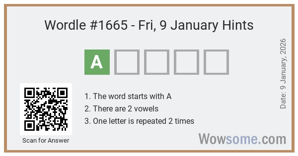 Wordle is a famous game about guessing word which has won hearts of everyone. Few Wordles are hard to crack. If you are stuck in the game, then you not alone. Let us try to solve the Wordle #1665 of Friday, 9th January 2026.
