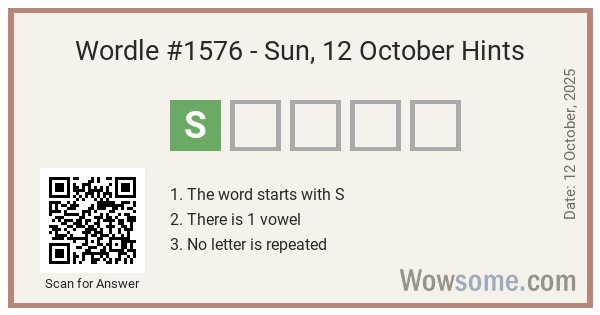Wordle is an addictive vocabulary game which has won hearts of everyone. Few Wordles are hard to crack. If you need some help, then you not alone. This article will help you solve the Wordle #1576 of Sunday, 12th October 2025.