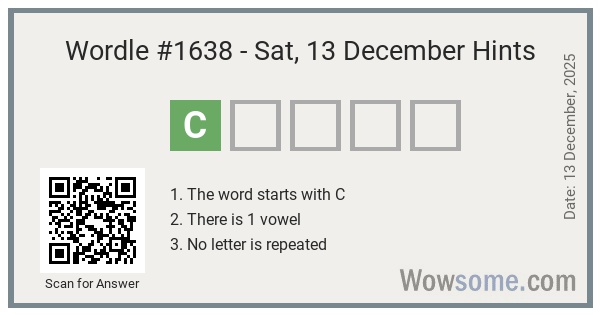 Wordle is a famous game about guessing word which most of us have played at least once. Not every Wordle can be solved easily. If you can not solve it, then we have some hints for you. In this article we will discuss the trending puzzle Wordle #1638 of Saturday, 13th December 2025.