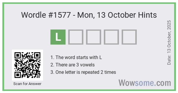Wordle is an addictive vocabulary game which has won hearts of everyone. Not every Wordle can be solved easily. If you can not solve it, then you not alone. This article will help you solve the Wordle #1577 of Monday, 13th October 2025.
