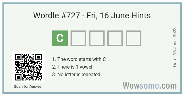 Can not solve the wordle #727 with three hints? Its ok, the puzzle is harder than it looks. The answer to the 16th June wordle is: