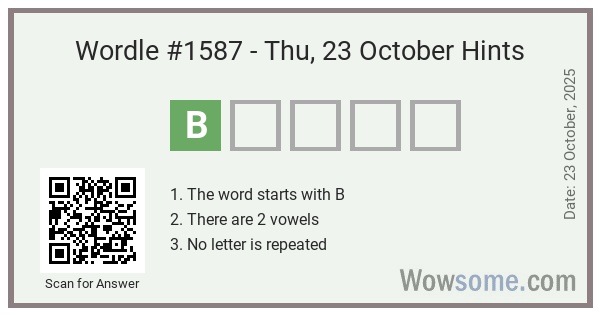 Wordle is an extremly popular vocab game which most of us have played at least once. Few Wordles are very difficult to guess. If you are stuck in the game, then do not worry we got you. In this article we will discuss the trending puzzle Wordle #1587 of Thursday, 23rd October 2025.