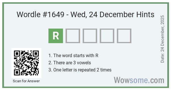 Wordle is an extremly popular vocab game which most of us have played at least once. Some of the Wordles are not easy to solve. If you can not solve it, then we have some hints for you. Let us try to solve the Wordle #1649 of Wednesday, 24th December 2025.