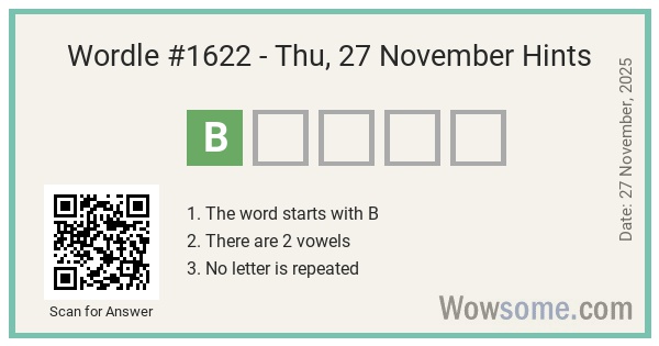 Wordle is an extremly popular vocab game which has won hearts of everyone. Some of the Wordles are not easy to solve. If you are stuck in the game, then you not alone. Today we will discuss the vocabulary puzzle Wordle #1622 of Thursday, 27th November 2025.