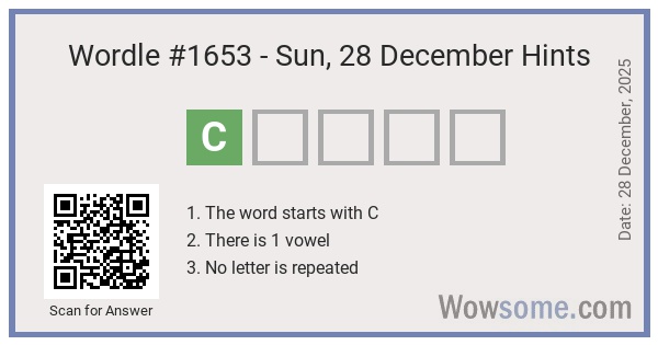 Wordle is a famous game about guessing word which most of us have played at least once. Few Wordles are very difficult to guess. If you can not solve it, then do not worry we got you. In this article we will discuss the trending puzzle Wordle #1653 of Sunday, 28th December 2025.