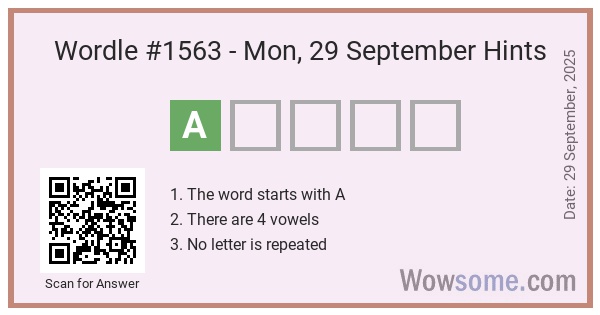Wordle is a famous game about guessing word which most of us have played at least once. Some of the Wordles are not easy to solve. If you are facing difficulty, then this page is for you only. In this article we will discuss the trending puzzle Wordle #1563 of Monday, 29th September 2025.